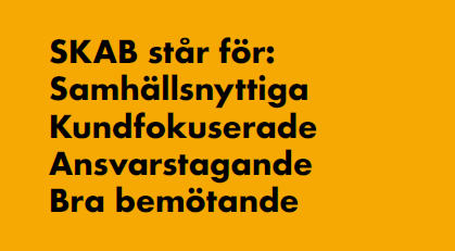 På SKAB har vi fyra ledord, våra värderingar, som vägleder det dagliga arbetet inom företaget: